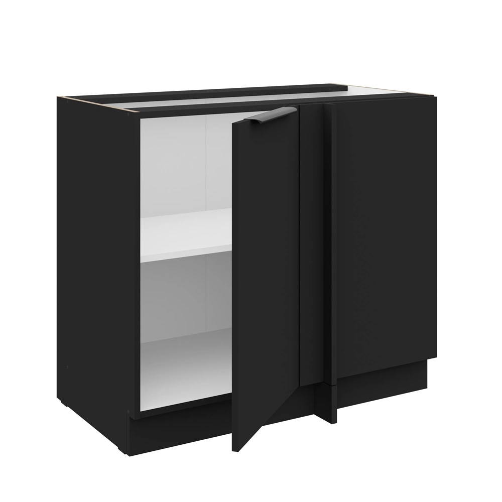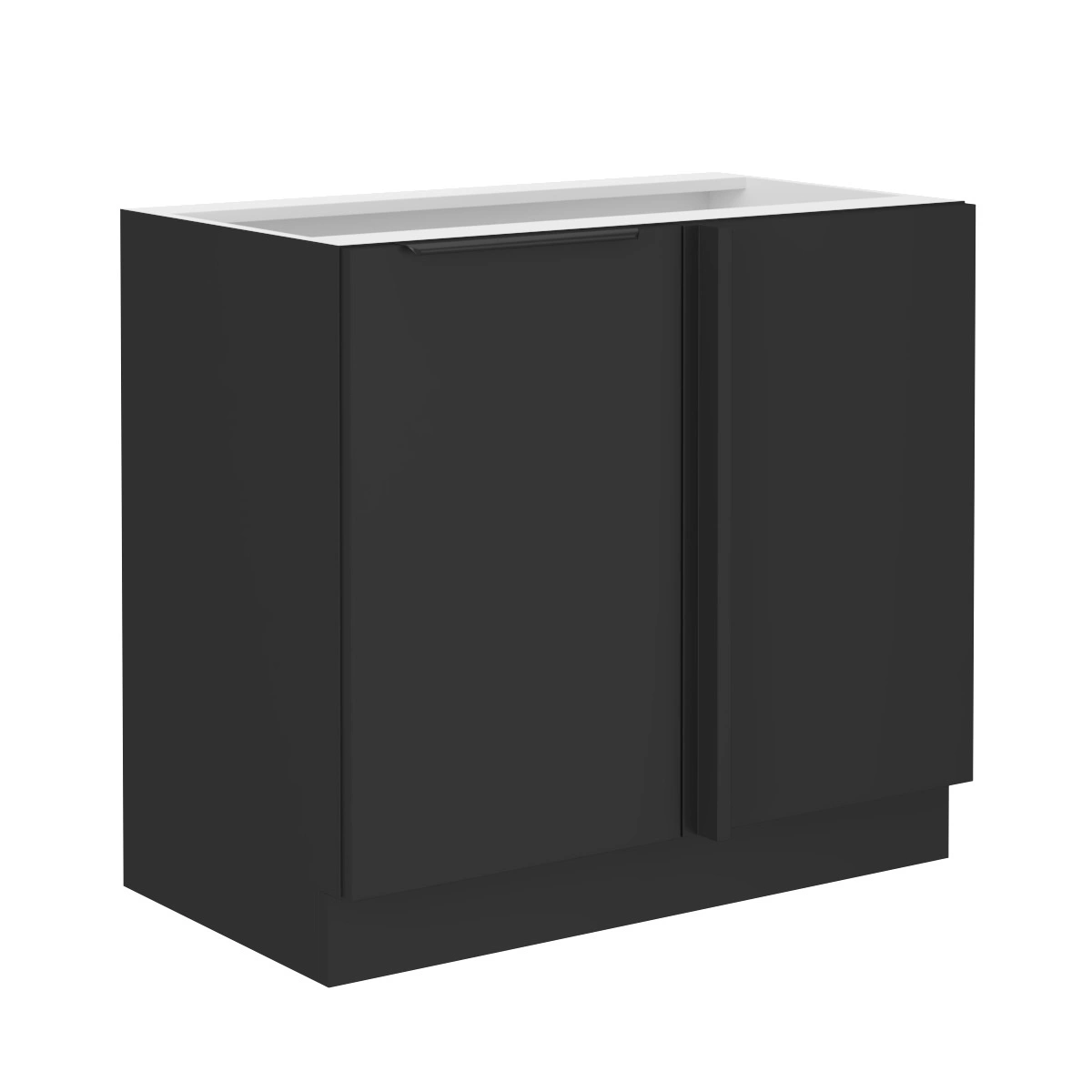 Eck-Küchenschrank-Türen in Schwarz mit matter Oberfläche sind aus laminierter Platte hergestellt. Die Vorderseite ist sehr widerstandsfähig gegen Feuchtigkeit und Unfallschäden. Eine stilvolle Ergänzung zu den Küchenschrankfronten sind schwarz, metallkantenhalterungen, die zusätzlich zu ihrer Hauptfunktion eine besondere Note in die.
