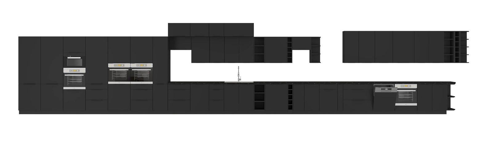 Die Eck-Küchenzeile Black in Schwarz gehört zur Kategorie der modularen Küchenmöbel, mit denen sich jedes beliebige Set zusammenstellen lässt.