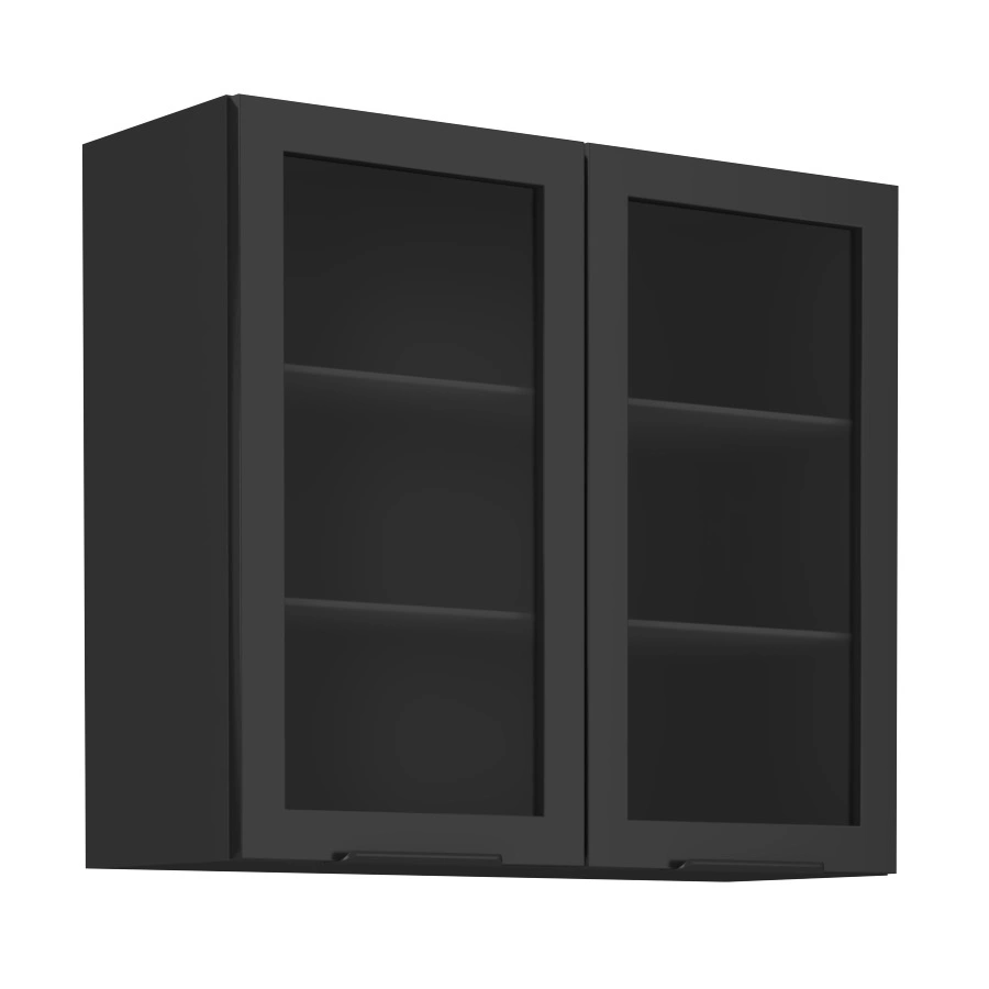 - Küchenwandschrank mit Vitrine Schwarz gehört zu den modularen Küchenmöbeln. Korpus aus hochwertiger Pappe. Der Vorteil der Platte ist ihre hohe Beständigkeit gegen äußere Einflüsse wie Dampf, hohe Temperaturen, verschüttete Flüssigkeiten.