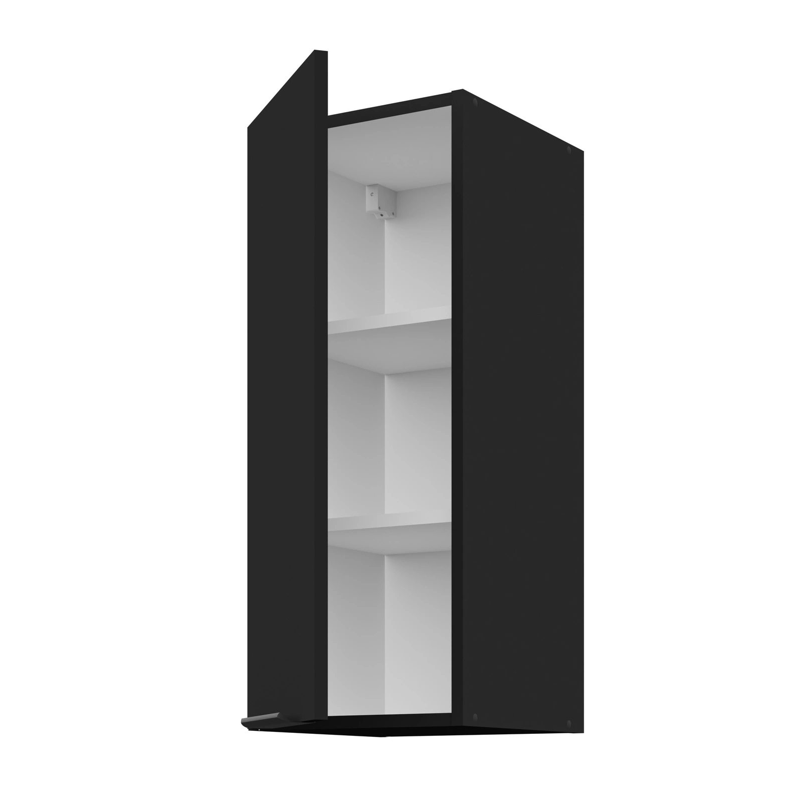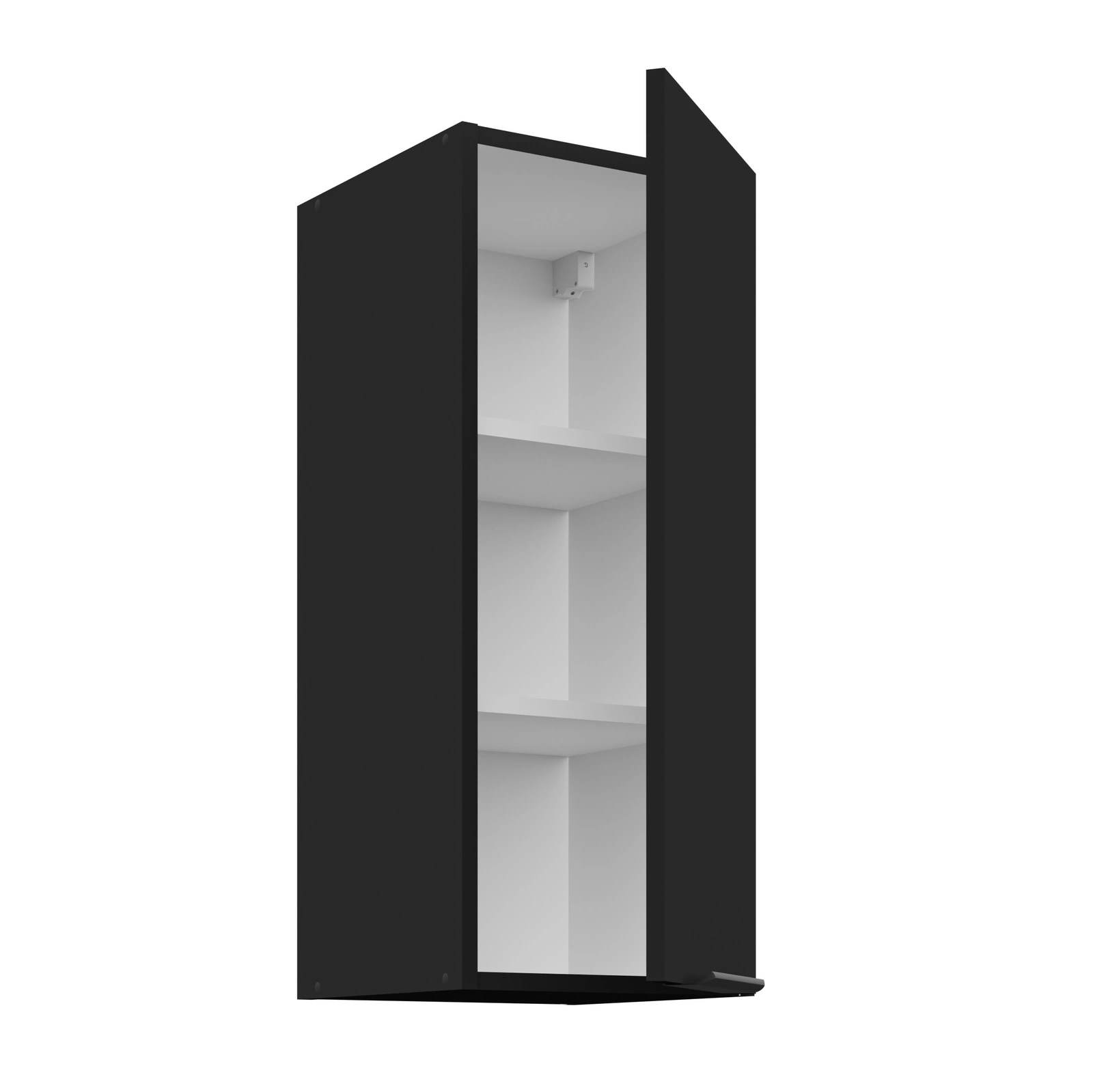 Der 30 cm lange schwarze Küchenhängeschrank gehört zur Kategorie der modularen Küchenmöbel, mit denen sich jede beliebige Ausstattung zusammenstellen lässt.