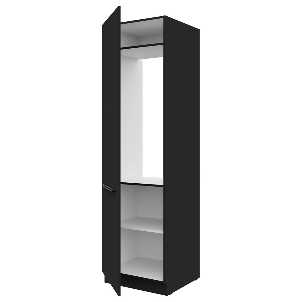 Schwarz 60 LO-210 2F Küchenschrank für Einbaukühlschrank Metallgriffe feuchtigkeits- und beschädigungsbeständiger Schrank
