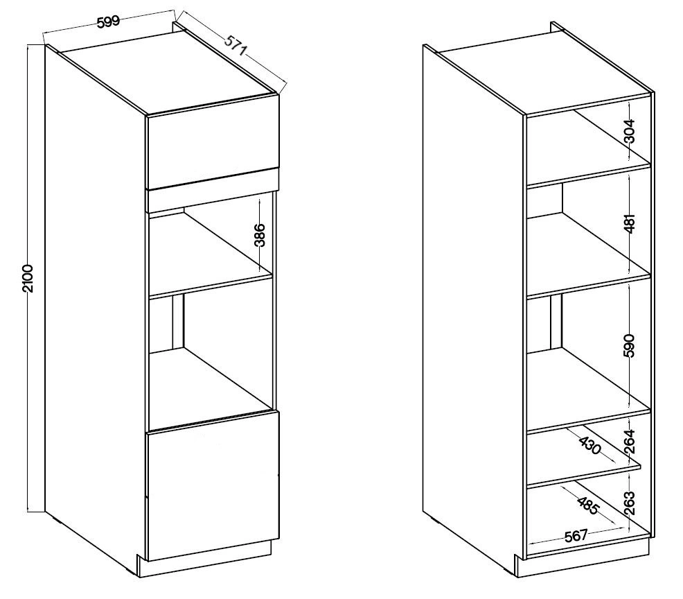 Der Küchen-Säuleneschrank Black 60 DPM-210 2F - moderne Aufbewahrungslösung für Mikrowelle und Ofen