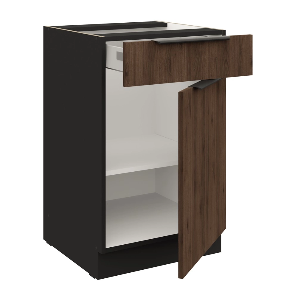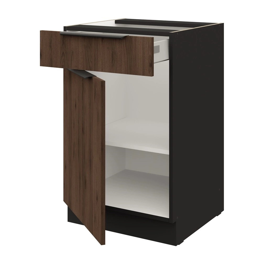 Der Brianza Küchenschrank mit Schublade 50 cm in Okapi Nussbaum/schwarz gehört zur Kategorie der modularen Küchenmöbel, mit denen sich beliebige Sets zusammenstellen lassen.