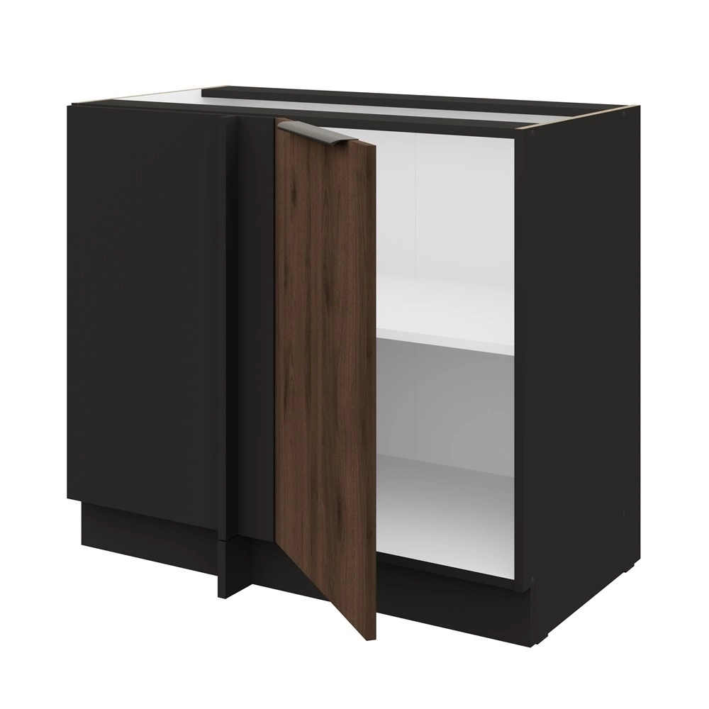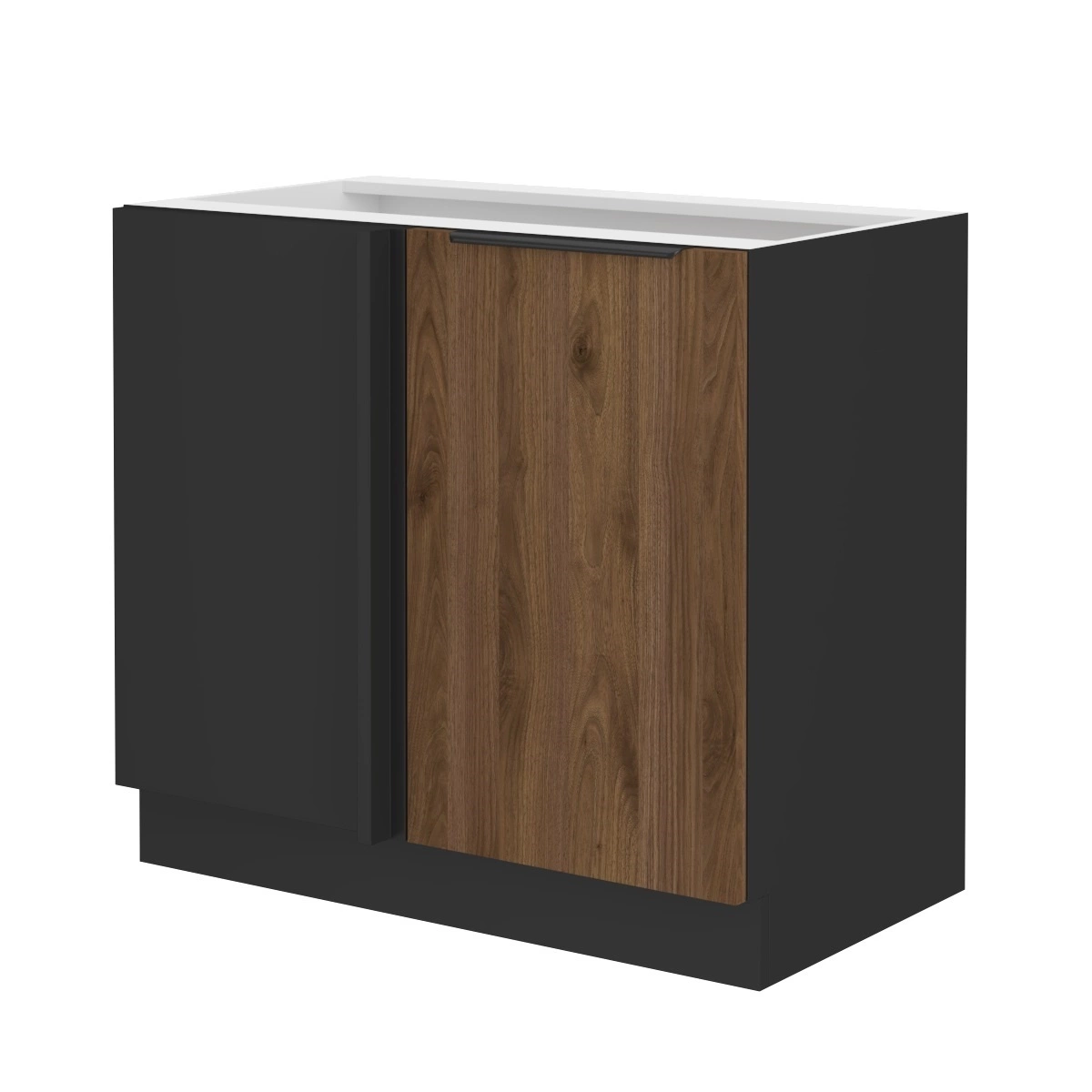 Eck-Küchenschrank-Türen in Okapi-Walnuss sind aus laminierter Platte hergestellt. Die Vorderseite ist sehr widerstandsfähig gegen Feuchtigkeit und Unfallschäden. Eine stilvolle Ergänzung zu den Küchenschrankfronten sind schwarz, metallkantenhalterungen, die zusätzlich zu ihrer Hauptfunktion dem Produkt eine besondere Note verleihen.