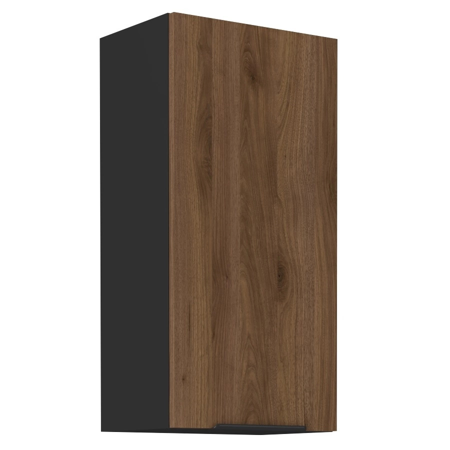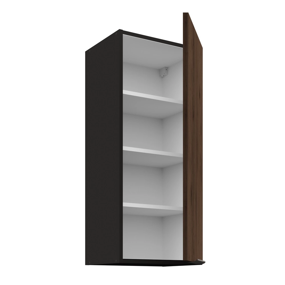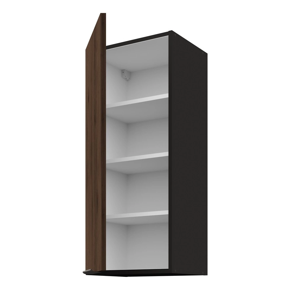 Der Küchenhängeschrank Brianza 40 cm in Okapi Nussbaum/Schwarz gehört zur Kategorie der modularen Küchenmöbel, aus denen sich beliebige Sets zusammenstellen lassen.