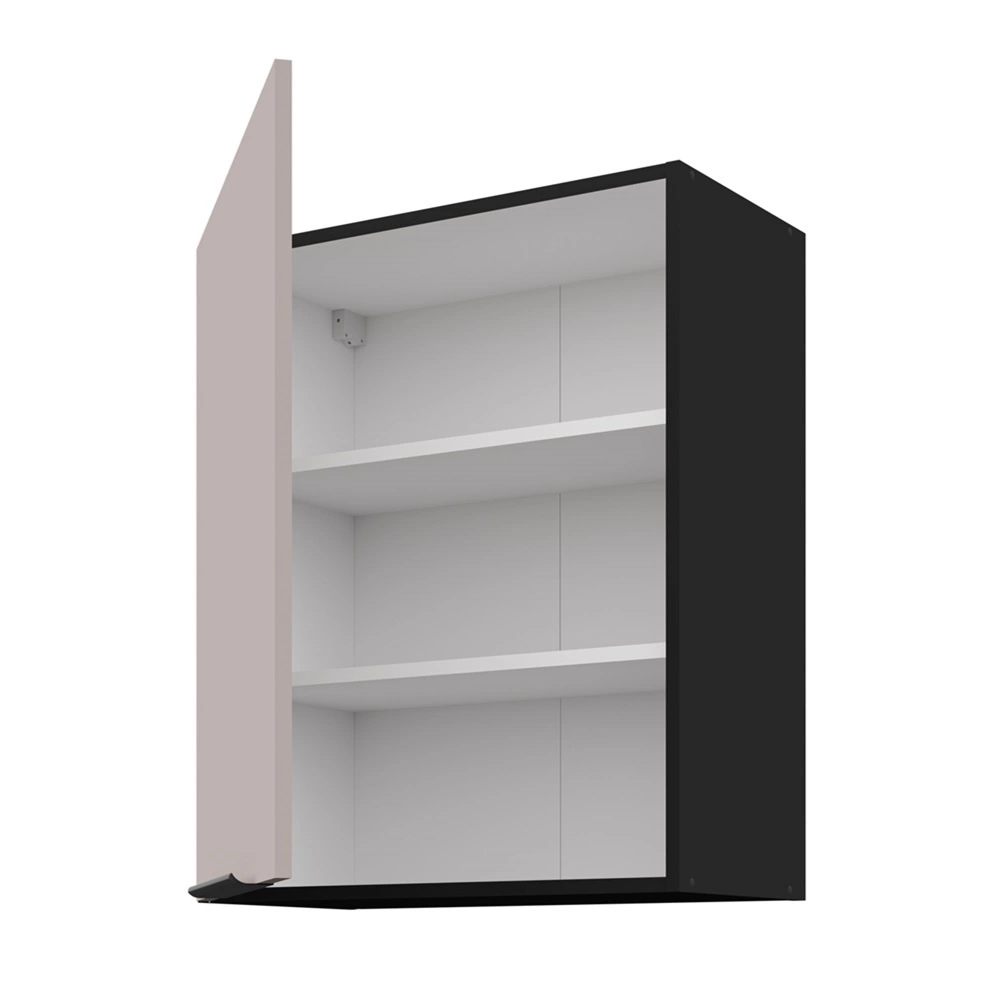 Küchenkorpus schwarz ist aus hochwertigem laminiertem Möbelplatte 16 mm dick. Der Vorteil dieser Art von Platten ist hohe Widerstandsfähigkeit gegen äußere Einflüsse wie Dampf, Hitze, verschüttete Flüssigkeiten. ABS-Furnierkanten erhöhen die Haltbarkeit des Küchenschranks.