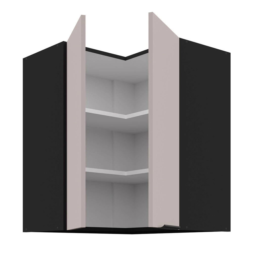 Der Tarraco Eck-Hängeschrank in beige/schwarz gehört zur Kategorie der modularen Küchenmöbel, aus denen sich beliebige Sets zusammenstellen lassen.