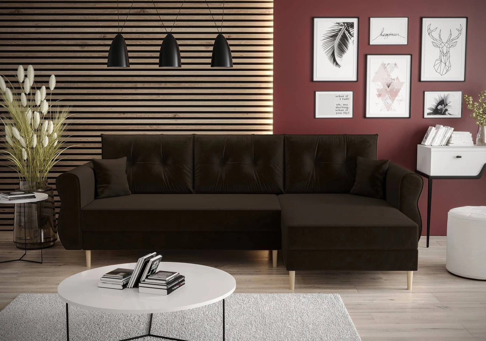 Ecksofa mit Schlaffunktion Wilkins braun rechte Seite stilvolles und modernes Design, das sich in jede Einrichtung einfügt