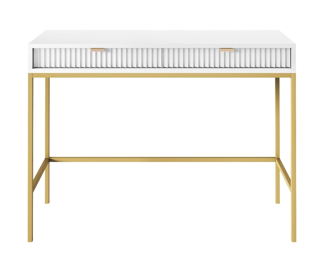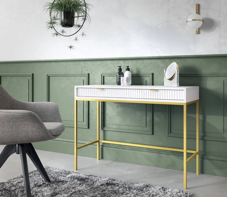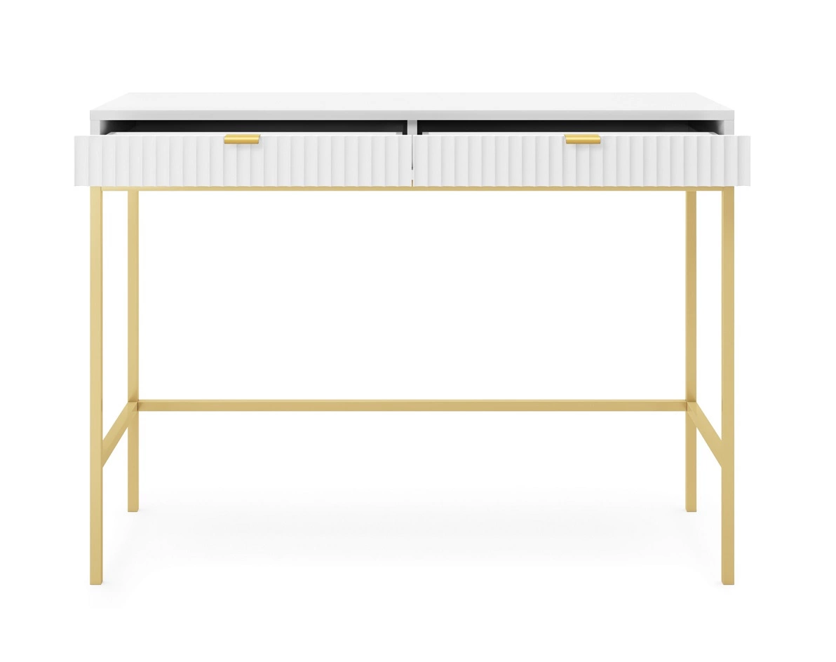 Konsolentisch Lovro weiße mit Schubladen stilvolles und funktionelles Möbelstück für den Flur, das Wohnzimmer oder das Büro Metallrahmen in goldener Farbe