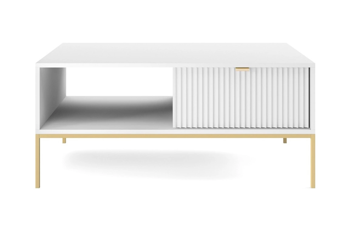 Couchtisch Lovro weiß mit Schubladen modernes Design auslaufsichere Platte goldene Metallbeine