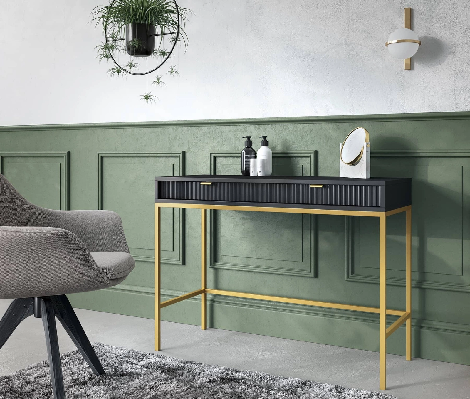 Czarna toaletka Lovro ze złotymi metalowymi nogami