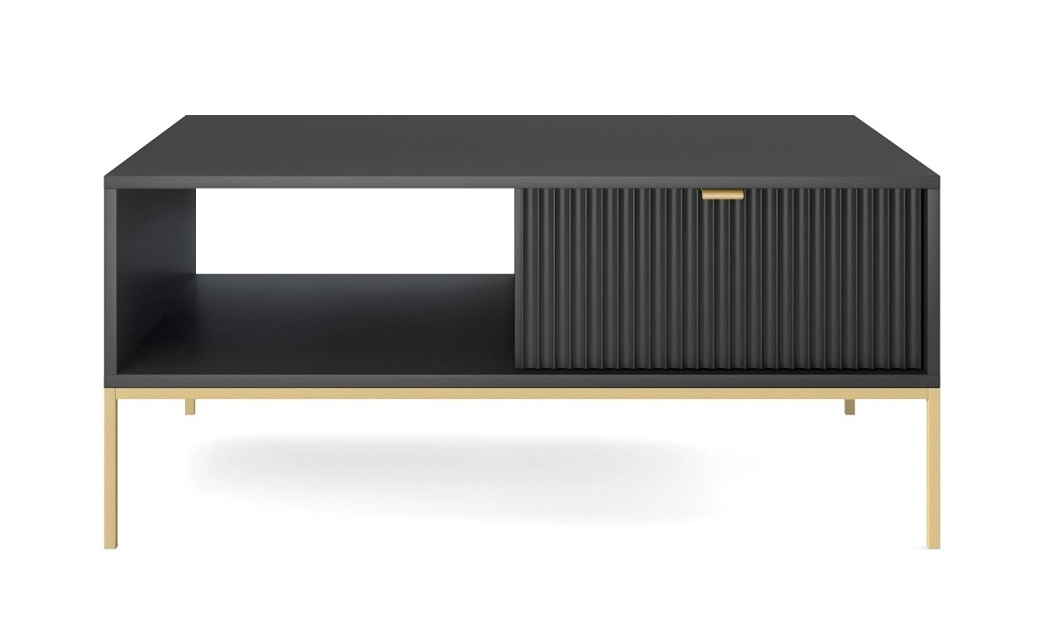 Couchtisch Lovro schwarz mit Schubladen modernes Design auslaufsichere Platte goldene Metallbeine