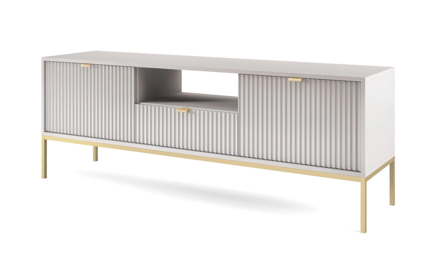 TV Schrank Lovro 154 cm modernes Design wird die Liebhaber von ausdrucksstarken Interieurs begeistern goldenen Metall-Accessoires