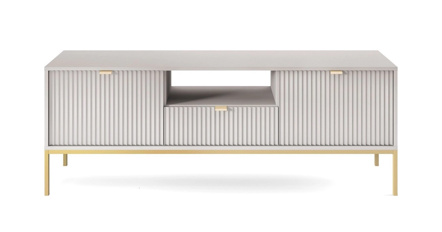 Geriffelt frondos aus MDF 18 mm dick einen besonderen Charme verleihen. Eine stilvolle Ergänzung zu den RTV-Schrankfronten sind goldfarbene Kantengriffe. Die Struktur der Möbel wurde mit mit Gold metallbeine o höhen 20 cm.