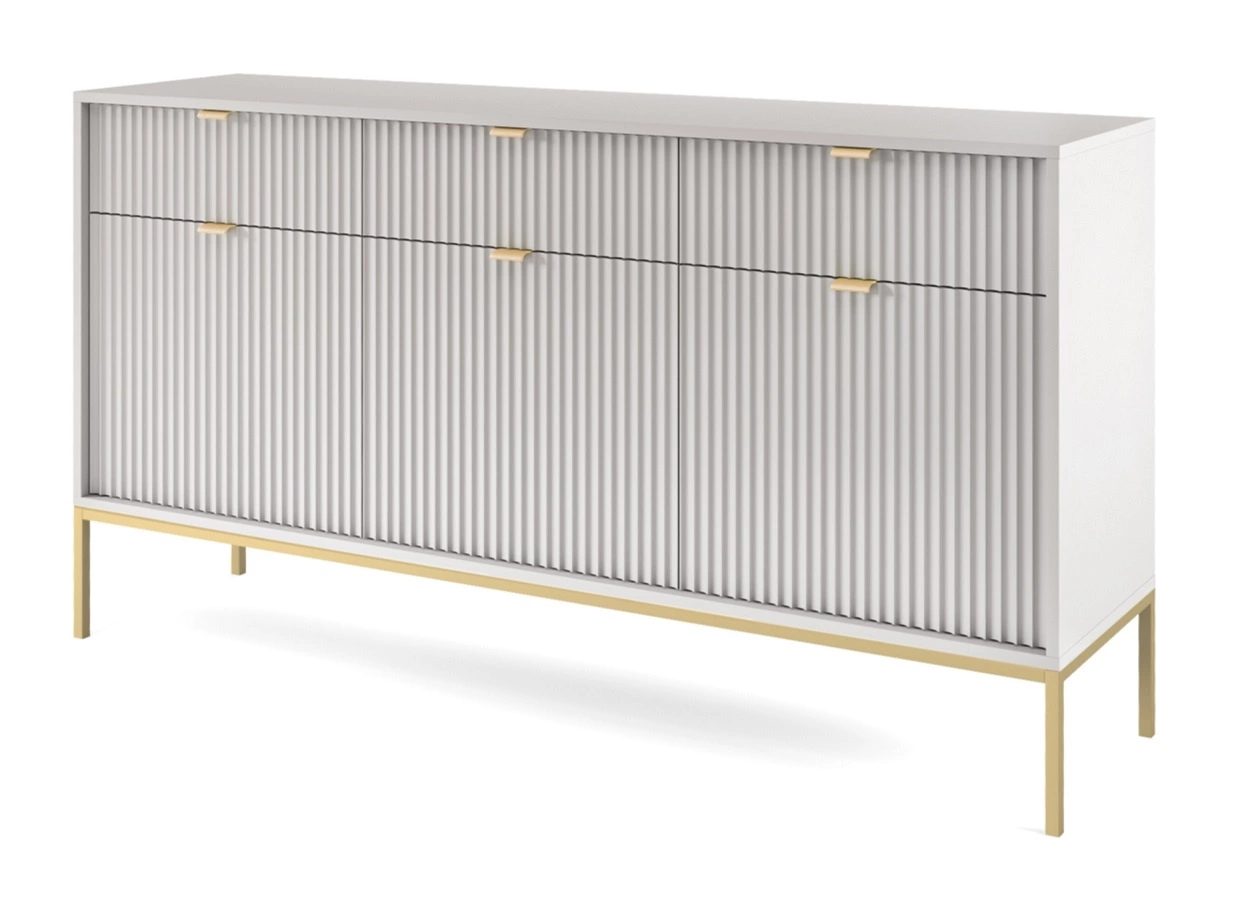 Geriffelt frondos aus MDF 18 mm dick einen besonderen Charme verleihen. Die stilvollen Abschlüsse der Kommodenfronten sind goldfarbene Kantengriffe. Die Struktur der Möbel wurde mit mit Gold metallbeine o höhen 20 cm.
