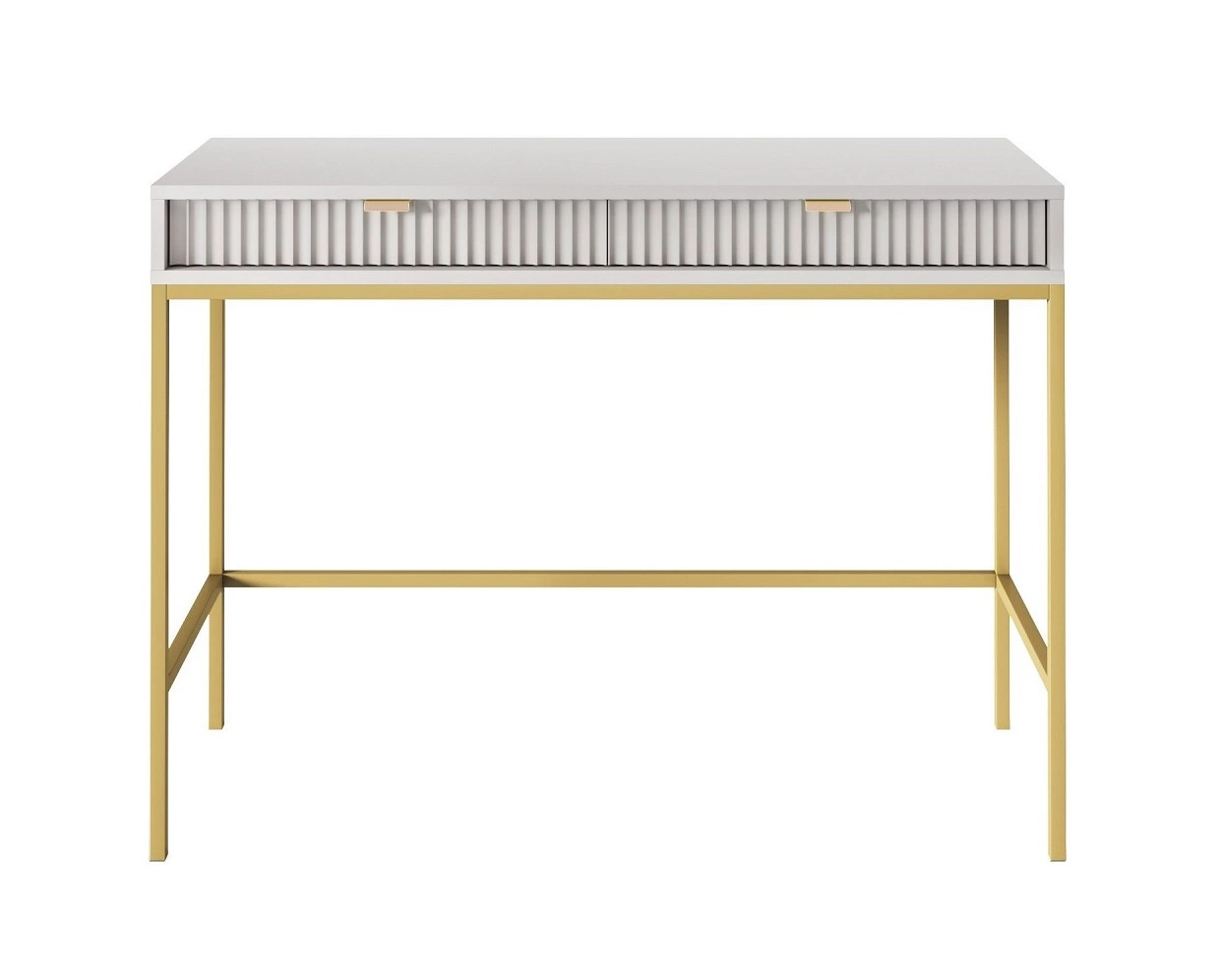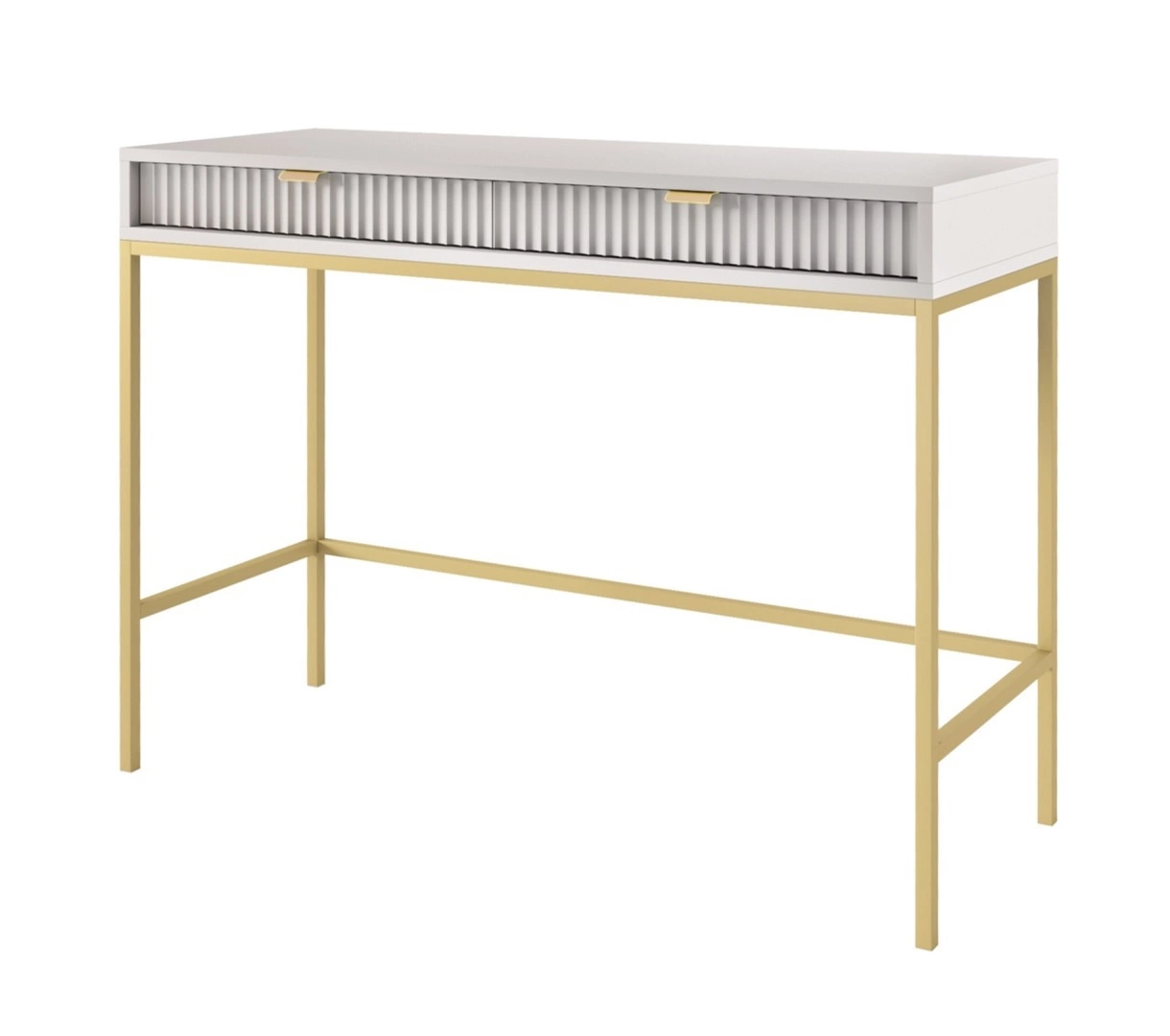 Geriffelt frondos aus MDF 18 mm dick einen besonderen Charme verleihen. Die stilvollen Abschlüsse der Schubladenfronten sind goldfarbene Kantengriffe. Die Struktur der Möbel wurde mit mit Gold metallbeine o mattes Finish.