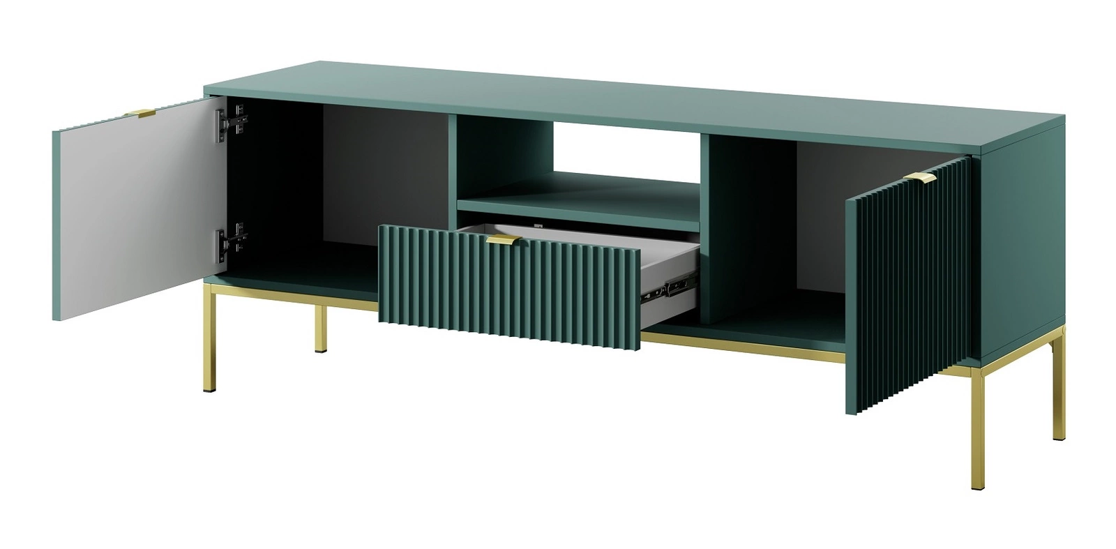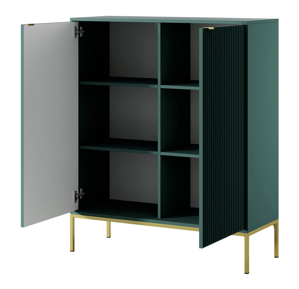 Geriffelt frondos aus MDF 18 mm dick einen besonderen Charme verleihen. Die Fronten des Hängeschranks sind stilvoll gestaltet goldfarbene Kantengriffe. Das Design der Möbel ist abwechslungsreich mit goldenen metallbeine o höhen 20 cm.
