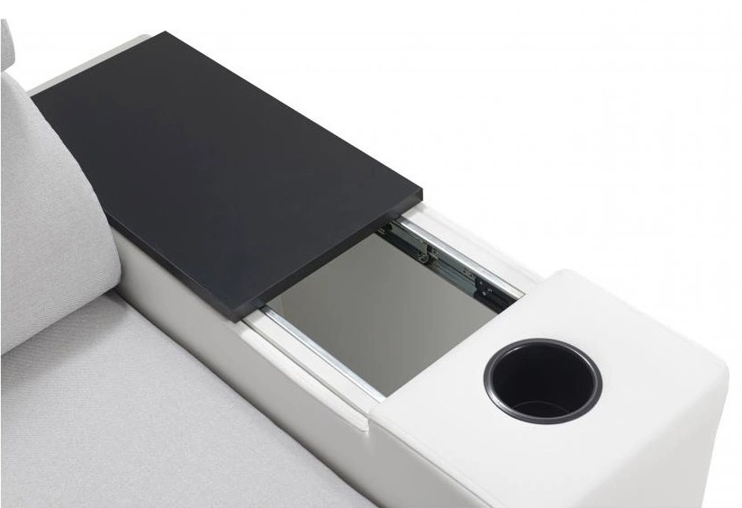 Die Extras dieses Möbels, die alle Benutzer schätzen werden, sind der Bettzeugbehälter, die Schlaffunktion, die verstellbaren Kopfstützen, der Öffnungsbügel und die Becherhalter an den Seiten.