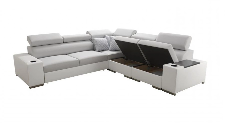 Die Abmessungen der Möbel sind optimal. Breite der Ecke 282 cm, maximale Höhe 95 cm und Tiefe 282 cm. Die Liegefläche der Eckeinheit beträgt 127x210 cm. Die Sitzhöhe des Möbels beträgt 42 cm und die maximale Höhe der Rückenlehne beträgt 55 cm. Gewellte Federn und T30-Polyurethanschaum ist das Material, aus dem der Sitz der Ecke hergestellt ist. Feste Rückenlehne mit verstellbaren Kopfstützen garantiert bequeme Entspannung nach einem langen Tag, die Sie, Ihre Lieben und auch die Gäste, die auf diesem einzigartigen Ecksofa sitzen, zu schätzen wissen werden!