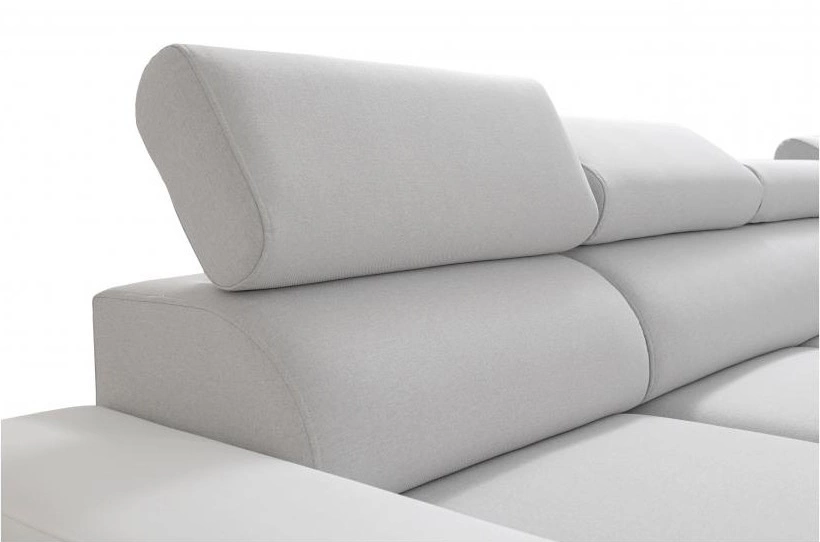 Die Abmessungen der Möbel sind optimal. Breite der Ecke 282 cm, maximale Höhe 95 cm und Tiefe 282 cm. Die Liegefläche der Eckeinheit beträgt 127x210 cm. Die Sitzhöhe des Möbels beträgt 42 cm und die maximale Höhe der Rückenlehne beträgt 55 cm. Gewellte Federn und T30-Polyurethanschaum ist das Material, aus dem der Sitz der Ecke hergestellt ist. Feste Rückenlehne mit verstellbaren Kopfstützen garantiert komfortable Entspannung nach einem langen Tag, die Sie, Ihre Lieben und auch Gäste, die auf diesem einzigartigen Ecksofa sitzen, zu schätzen wissen werden!