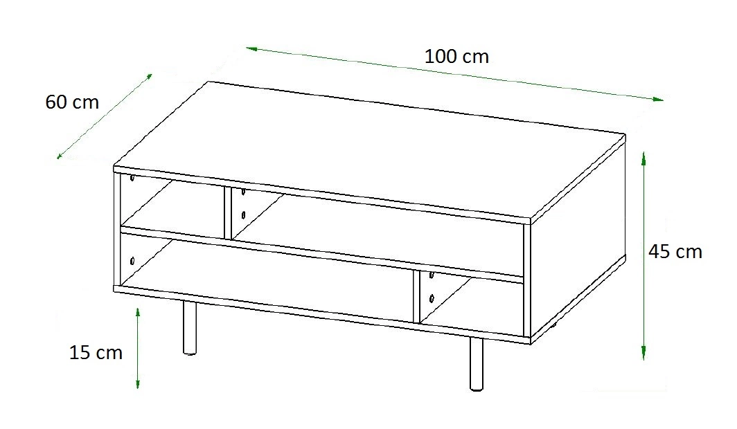 Der Couchtisch wurde aus laminierter Platte von hoher Qualität 16 mm dick, die resistent gegen äußere Einflüsse wie Druckstellen, Stöße und unglückliche Kratzer ist. Der gesamte Körper wurde unterstützt durch metallsockel.