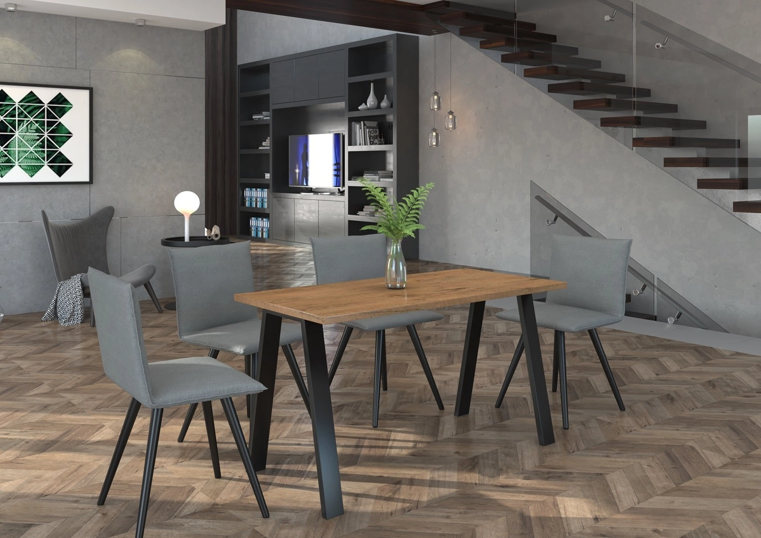 Tischplatte aus hochwertig laminierte Platte, 28 mm dick was es widerstandsfähig gegen verschiedene Arten von Schäden macht und für verschüttete Flüssigkeiten. Die Beine sind aus metallprofilen 80x40mm schwarz pulverbeschichtet mit einer matten Oberfläche im Loft-Stil.