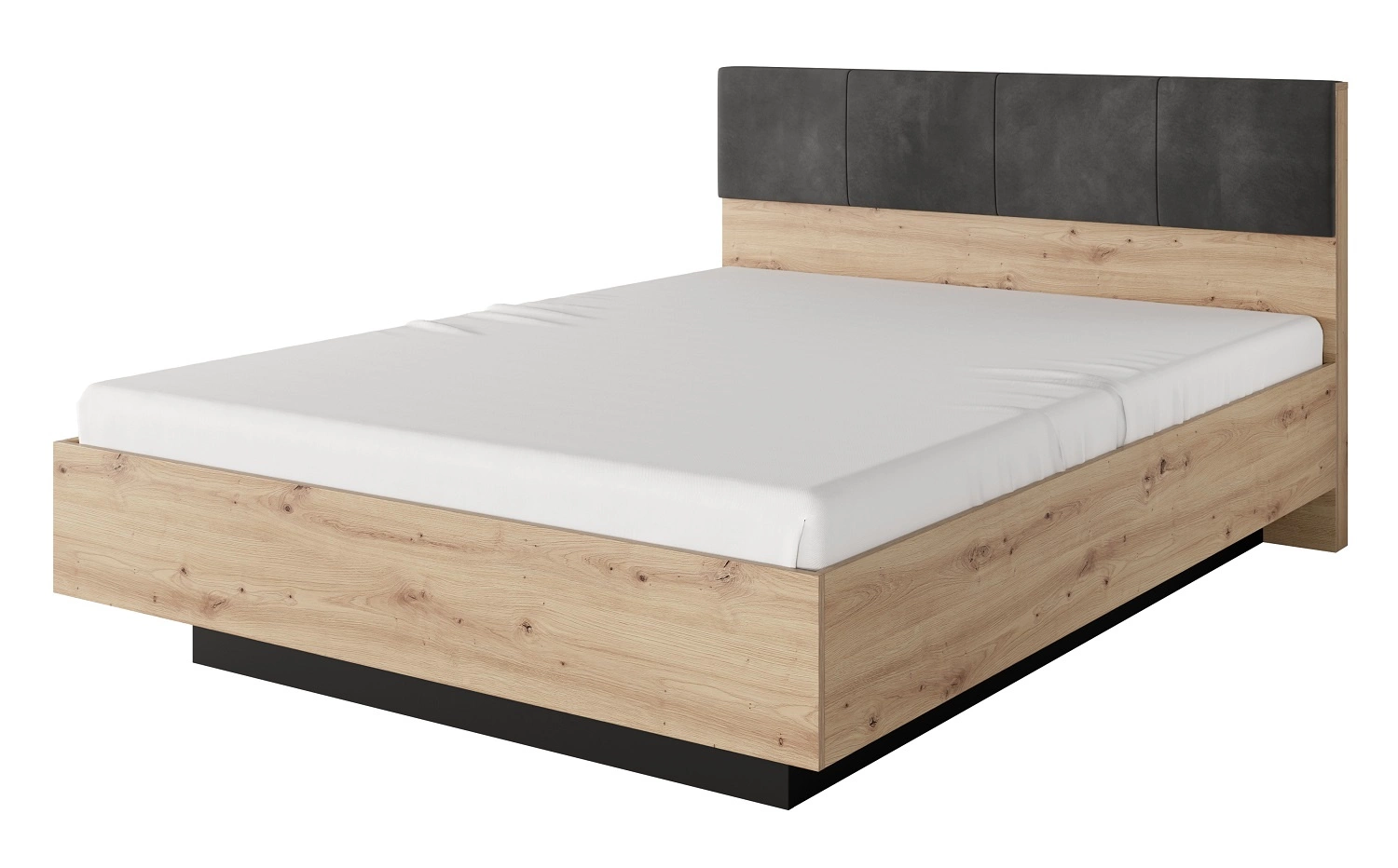 Bettgestell in Farbe eiche artisan wurde hergestellt aus hochwertigem 16 mm starkem laminiertem Karton, die resistent gegen äußere Einflüsse wie Druckstellen, Stöße und unglückliche Kratzer ist. Die charakteristischen Elemente des Bettes sind sockel für eine stabile Basis, breite Kopfstütze und gepolstertes Paneel.