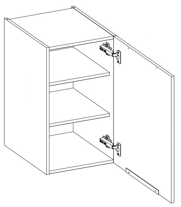 Küchenschränke 40 D 1F BB und 40 G-72 1F haben eine Universaltür, die sowohl auf der rechten als auch auf der linken Seite angebracht werden kann.