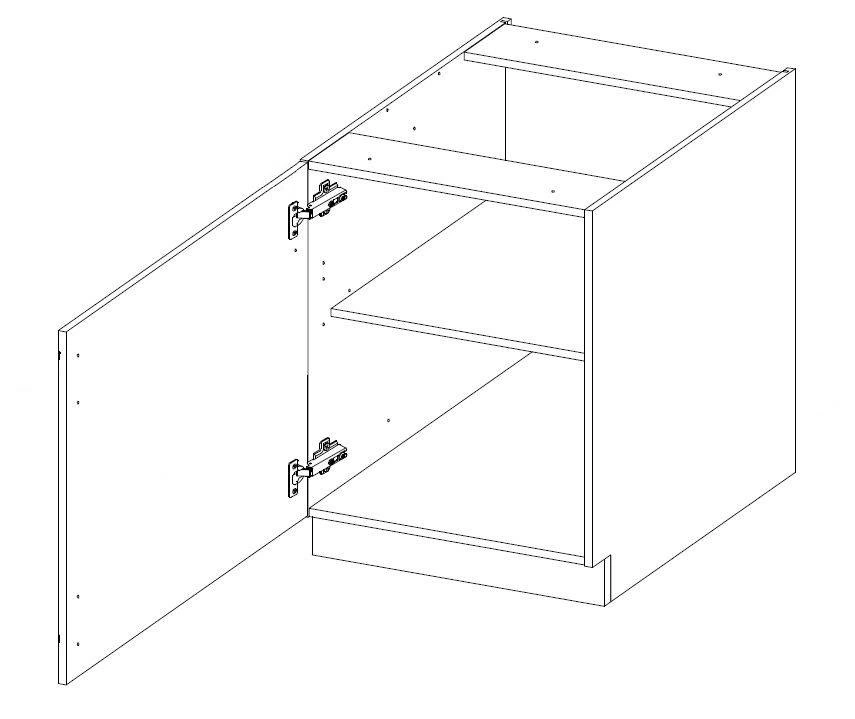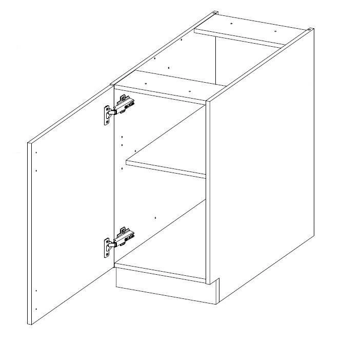 Küchenschränke 60 D 1F BB, 40 D 1F BB und 40 G-72 1F haben eine Universaltür, die sowohl auf der rechten als auch auf der linken Seite angebracht werden kann.