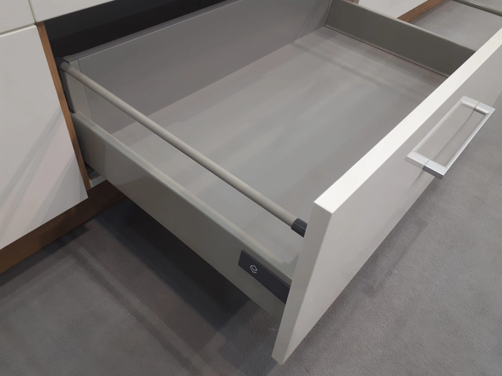 Die Küchenschränke aus dem Valico-Set sind ausgestattet mit einem Soft-Close-System für Türen und Schubladen.