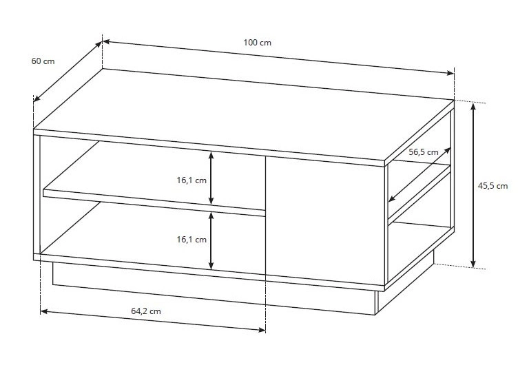 Der Couchtisch wurde aus laminierter Platte von hoher Qualität 16mm dick, die resistent gegen äußere Einflüsse wie Druckstellen, Stöße und unglückliche Kratzer ist. Offene Regale unter der Arbeitsplatte zusätzlichen Platz schaffen.