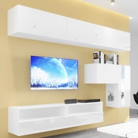 Metoni weiß / weiß glänzend universelle und stilvolle Wohnwand für das Wohnzimmer minimalistisches Design in einer modernen Umgebung