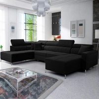 Ecksofa mit Schlaffunktion Nausa III schwarz rechts Samt stilvolles bequemes Ecksofa verstellbare Kopfstützen Bettzeugcontainer
