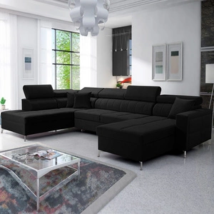 Ecksofa mit Schlaffunktion Nausa VI schwarz linke Seite stilvolles Ecksofa für Wohnzimmer mit komfortabler Verarbeitung weichen Samtstoff