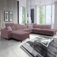 Ecksofa mit Schlaffunktion Kelly Sleek X lavendel rosa linkes extrem elegantes Ecksofa für Wohnzimmer mit verstellbaren Kopfstützen