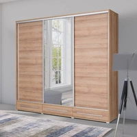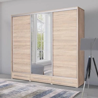 Schiebeschrank Hajfa 255 cm Eiche sonoma moderner Design-Schrank mit Spiegel Korpus aus 22 mm starker Platte