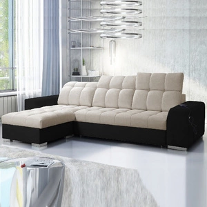 Ecksofa mit Schlaffunktion Luigi beige / schwarz links Ecksofa mit zwei Bettkästen Stoff mit interessanter Struktur
