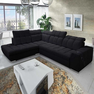 Ecksofa mit Schlaffunktion Luigi schwarz links Ecksofa mit zwei Bettkästen Stoff mit einer interessanten Struktur