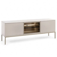 RTV Schrank Amma 154 cm beige elegante Form des Möbels in einem modernen Stil geschmackvoll geriffelte Front sicher gehärtetem Glas