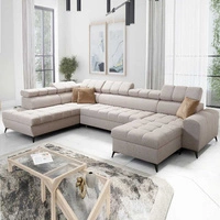 Ecksofa mit Schlaffunktion Bolmso VI beige links bequemes Ecksofa mit verstellbaren Kopfstützen dekorative Steppung auf der Sitzfläche