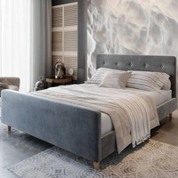 Polsterbett Isara 160x200 marineblau mit Stauraum im modernen skandinavischen Stil mit einem markanten Kopf- und Fußteil