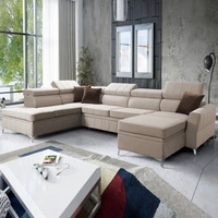 Ecksofa mit Schlaffunktion Rava III hellbeige Linkshändersamt komfortables Ecksofa mit verstellbaren Kopfstützen und Bettzeugbehälter