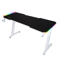 Zeo Gaming-Schreibtisch weiß/schwarz Designer und ergonomischer Schreibtisch rutschfeste Carbonplatte vollständig mit Pad LED-Beleuchtung abgedeckt