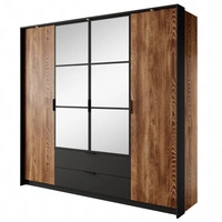 Verspiegelte Garderobe Dover 223 cm Kastanie / anthrazit originelles Design Metallgriffe ideal Schlafzimmer Kleiderschrank mit Schubladen