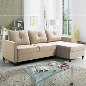 Ecksofa mit Schlaffunktion Terni creme rechts praktisch und funktionell, ausgestattet mit geräumigen Behältern für Bettzeug