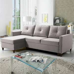 Ecksofa mit Schlaffunktion Terni graue Esche rechtes Sofa praktisches und funktionelles Ecksofa mit geräumigen Behältern für Bettzeug