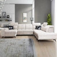 Ecksofa mit Schlaffunktion Buffalo IX creme linke Seite stilvolles Ecksofa für Zimmer aus Velourstoff Zierkissen