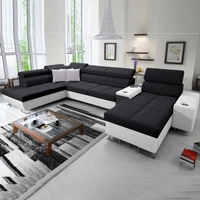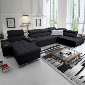 Ecksofa mit Schlaffunktion Dafni V schwarz-weißes, linksgeflochtenes, bequemes Ecksofa mit verstellbaren Kopfstützen