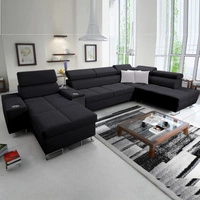 Ecksofa mit Schlaffunktion Dafni V schwarz links geflochten bequemes Ecksofa mit verstellbaren Kopfstützen
