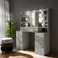 Schminktisch Adel 110 cm grau mit LED-Beleuchtung Schminktisch mit Spiegel im Glamour-Stil geräumige Schubladen Metallgriffe